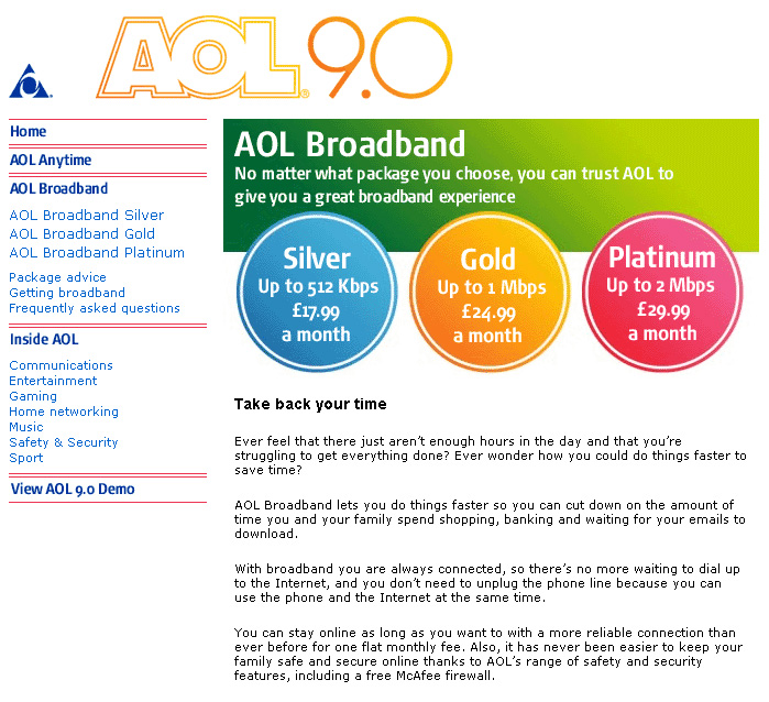 Support marketing efforts to promote release of AOL 9.0 client software and new access product suite. Update site in line with new global style guide.
